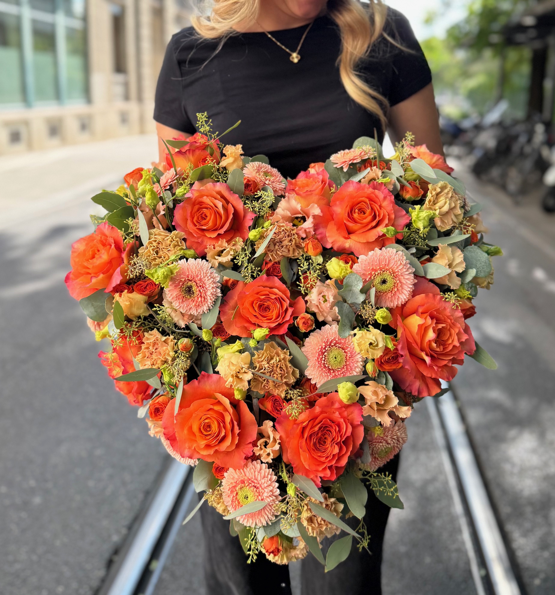 The Warm Heart is a delicate, heart-shaped composition in luminous orange hues – from soft peach to deep orange – symbolizing light, remembrance and serenity.