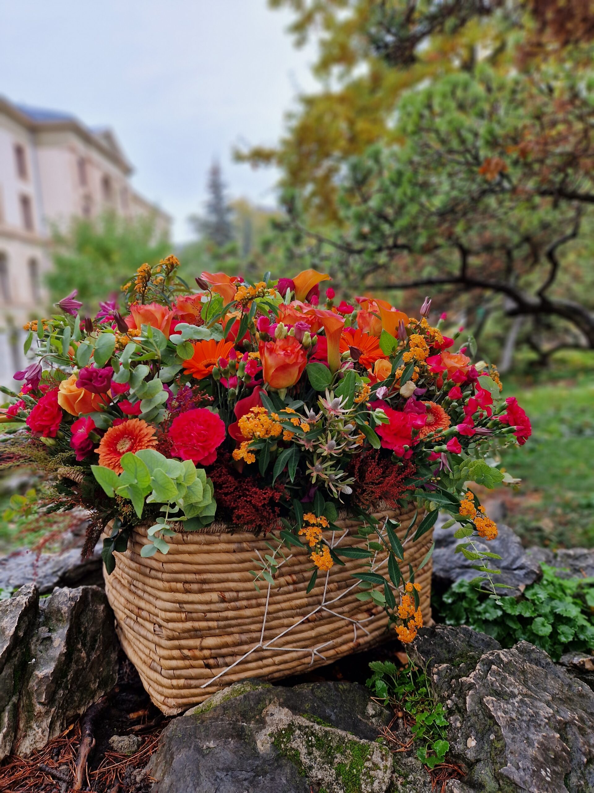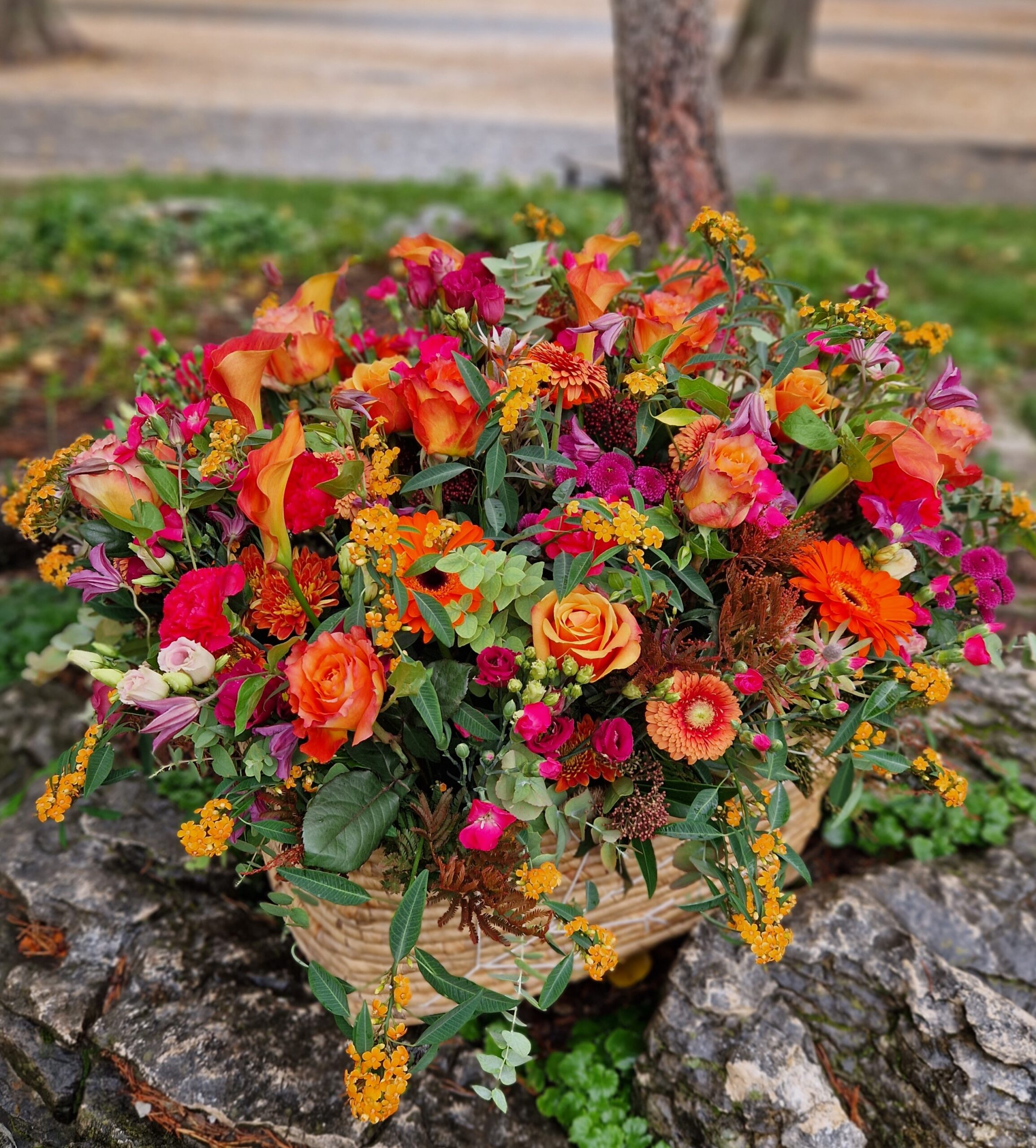 Dive into a whirlwind of exotic colors with our “Indian Breeze” basket. Nestled in a generous basket, this vibrant floral arrangement marries flamboyant hues of orange and fuchsia, evoking the spicy markets and dazzling sunsets of the Indian subcontinent. Each flower has been carefully chosen for its freshness and intensity, creating a bouquet that is sparkling, bold and full of life.