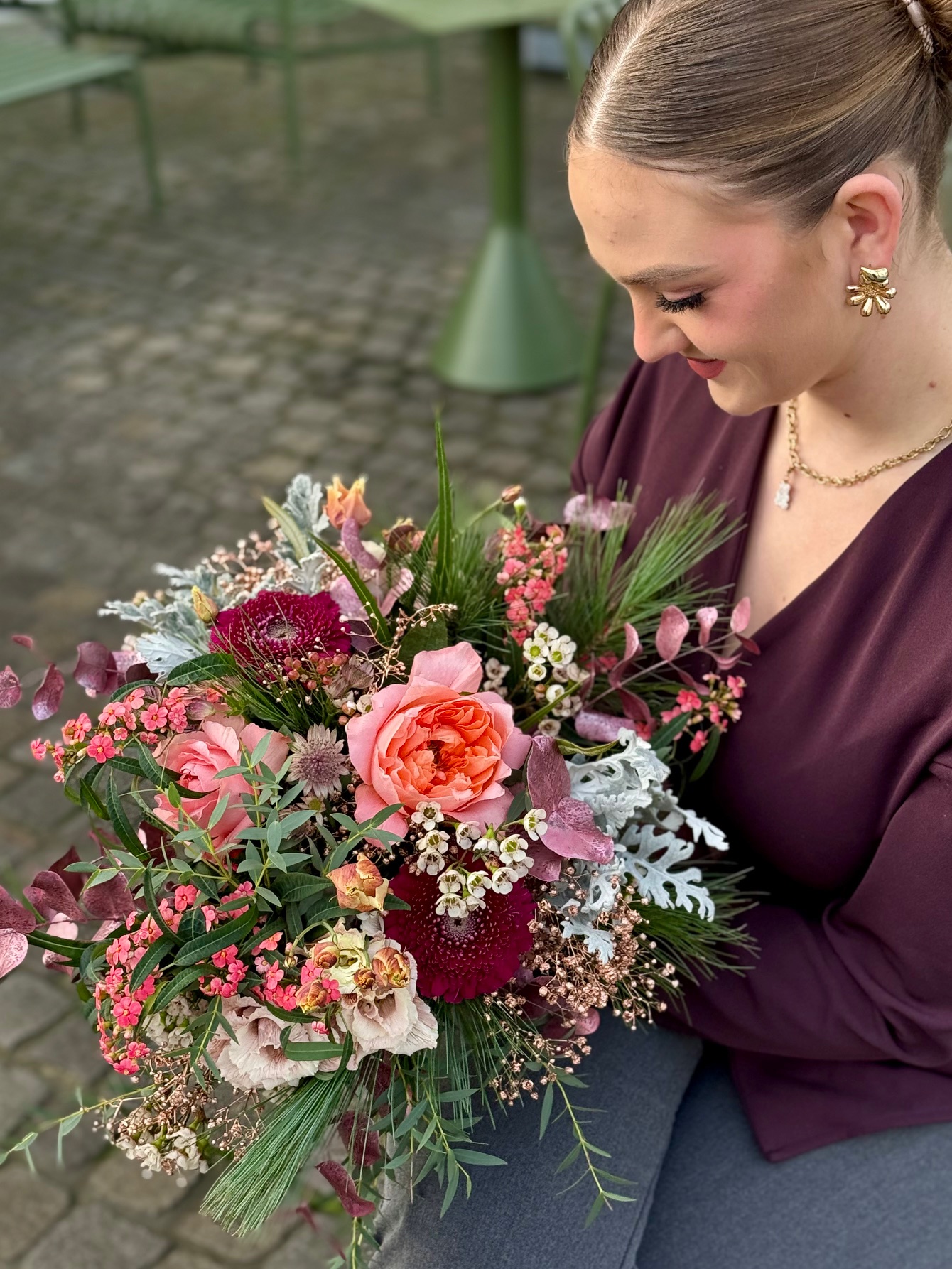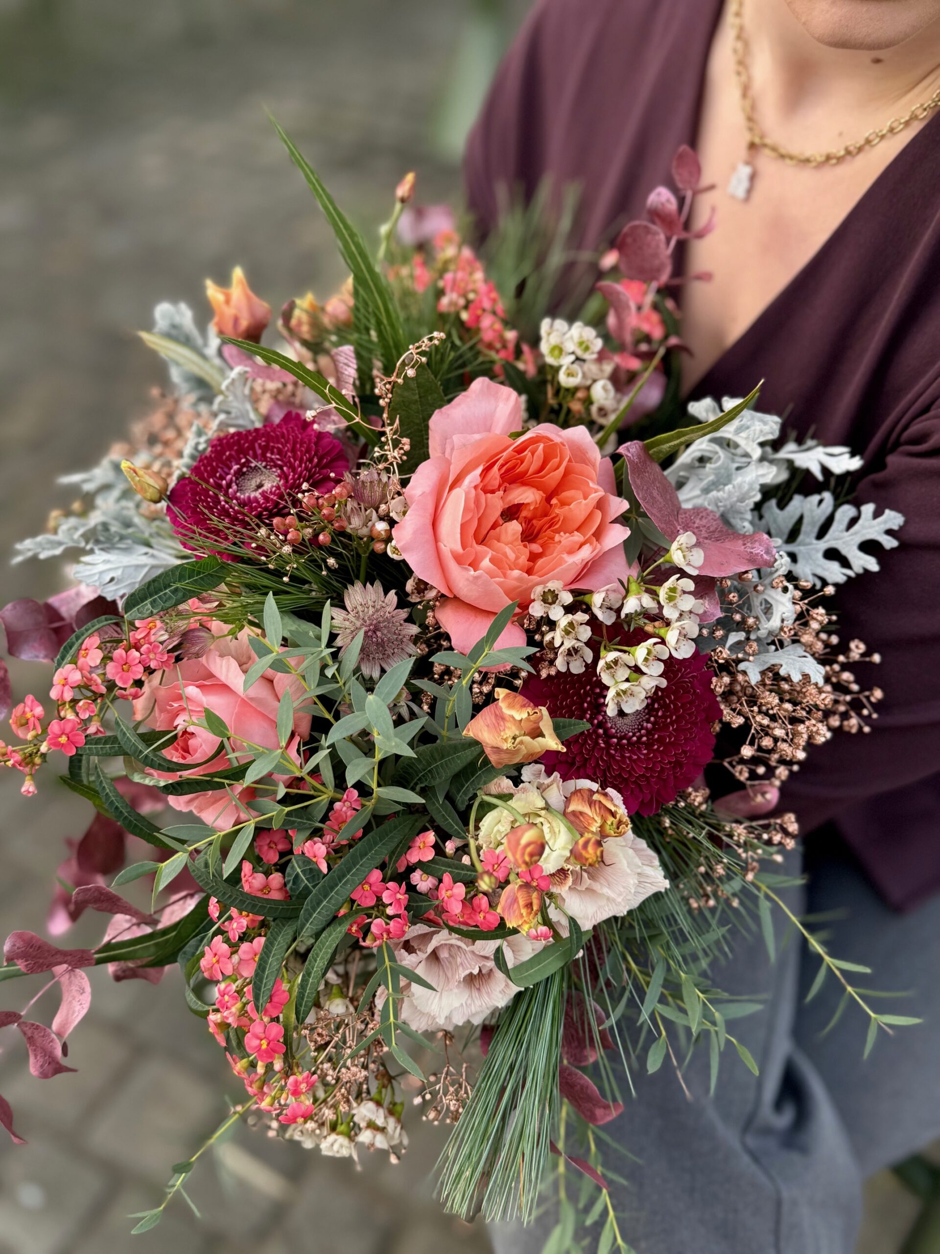 The Charme d’Hiver bouquet evokes the softness and elegance of the cold season, thanks to its red, silver and pastel flowers. Refined and soothing, it adds a luminous touch to any interior.