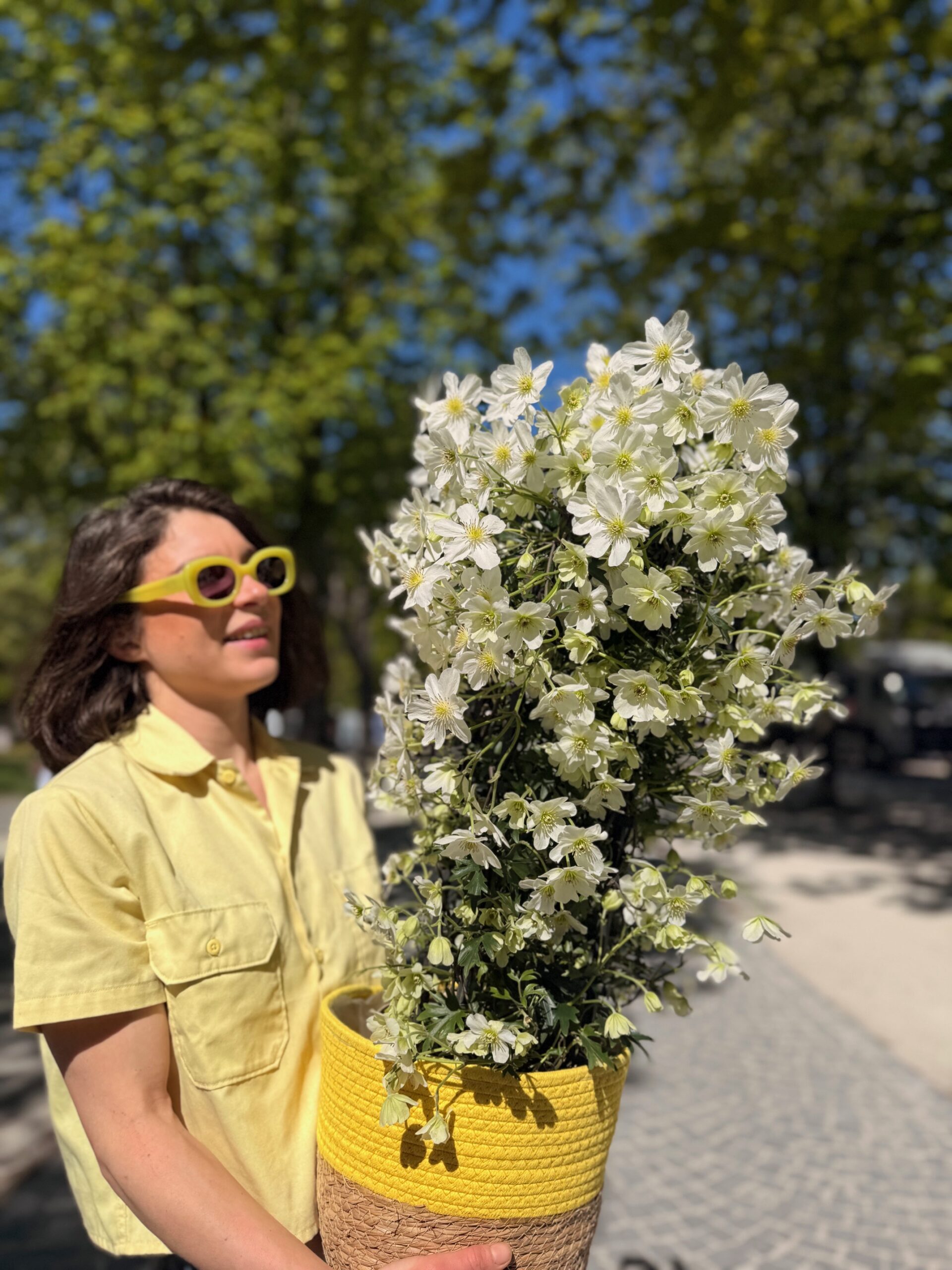 Légère et délicate, la clématite déploie ici une multitude de petites fleurs étoilées d’un blanc pur.